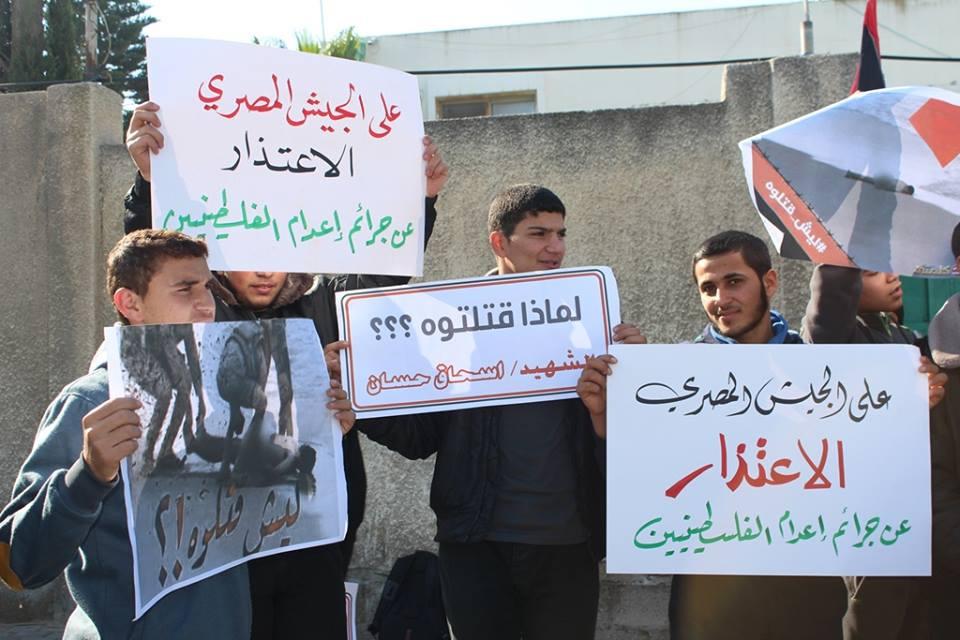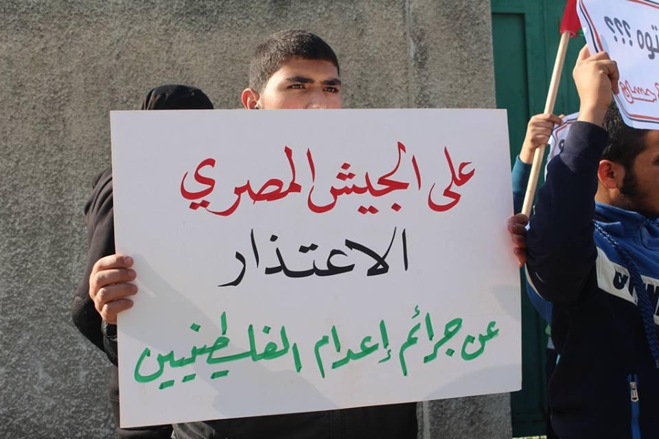 واستنكر المشاركون من الطلاب وبعض الفصائل بغزة في وقفة احتجاجية أمام السفارة المصرية بغزة؛ إعدام الجيش المصري للفلسطينيين، داعين المؤسسات الحقوقية لرفع القضايا في المحاكم الدولية.