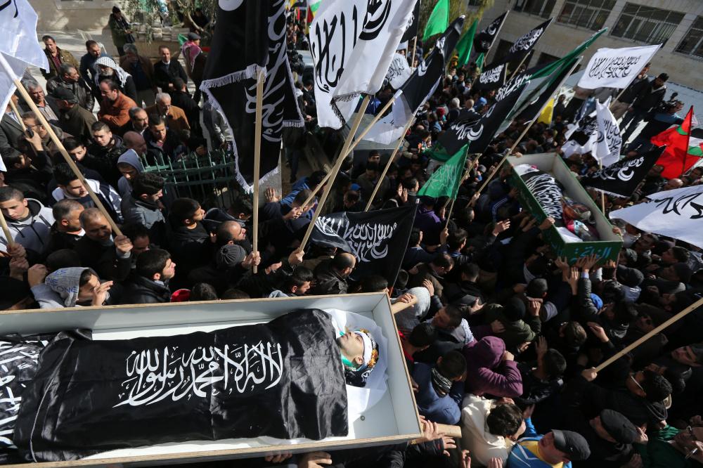 تشييع جثماني الشهيدين اسحاق بدران وأحمد القنيبي في كفر عقب شمال القدس المحتلة