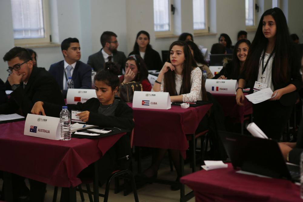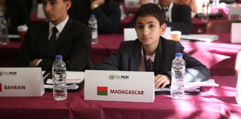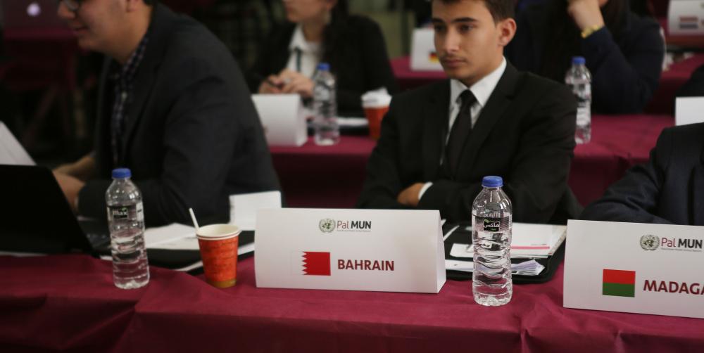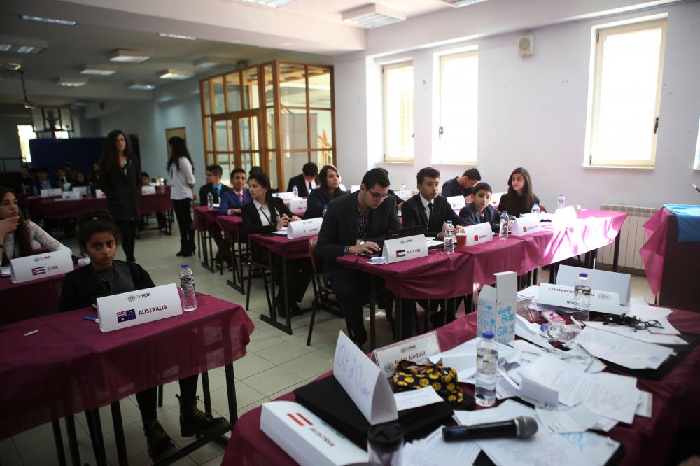 وداخل قاعة في مدرسة الفرندز برام الله، اجتمع 405 طلاب من 12 مدرسة في فلسطين، معلنين بدء مؤتمرهم وعلى سلم اولياته 27 قضية منها "تهريب المعادن الثمينة من إفريقيا إلى الولايات المتحدة وأوروبا .. انهيار الاقتصاد السوري .. أزمة المياه في العالم .. الإرهاب عبر الإنترنت .. حقوق المرأة في الخليج العربي .. الصراعات الإرهابية في ليبيا وبلاد الشام .. الصراع الفلسطيني الإسرائيلي استخدام الطائرات بدون طيار في الحروب، وازمة اللاجئين في اوروبا قادمين من الدول التي تشهد الحروب".