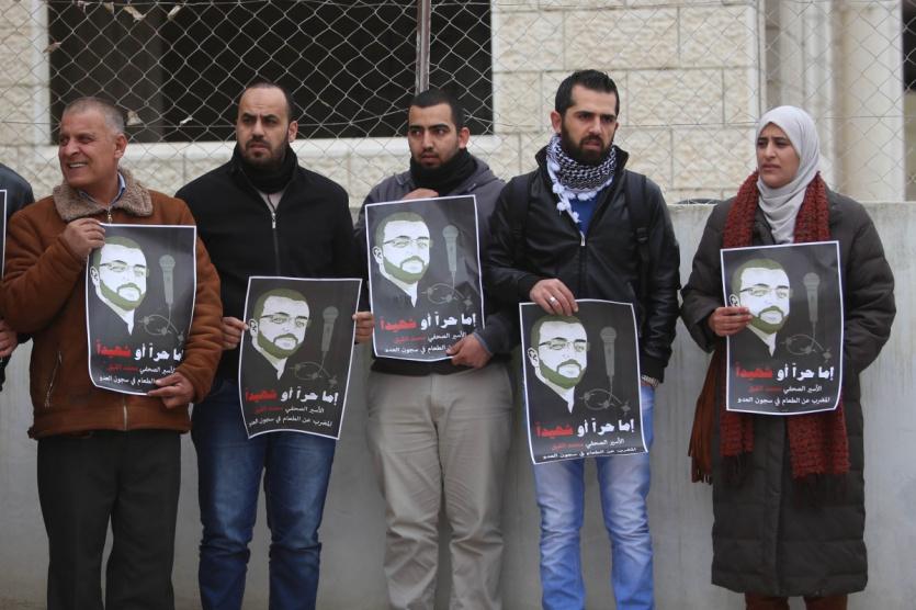 إعتصام تضامني مع الأسير الصحفي محمد القيق أمام مقر الصليب الأحمر في رام الله