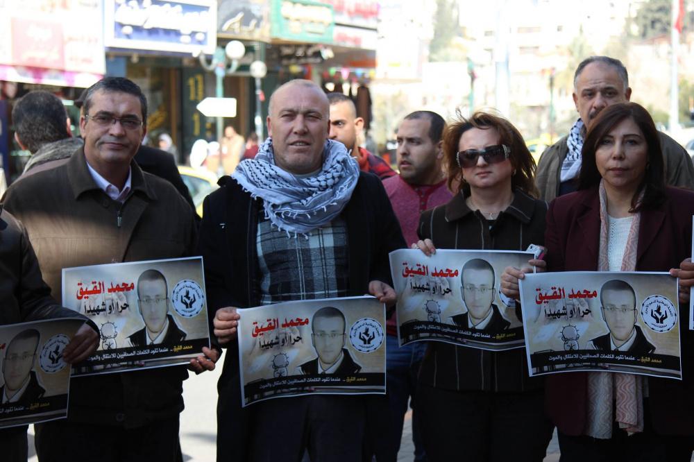 وقفة تضامنية في نابلس مع الأسير الصحفي محمد القيق