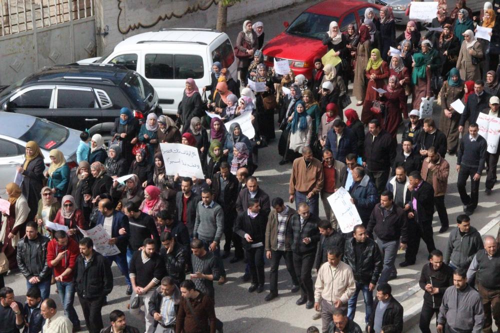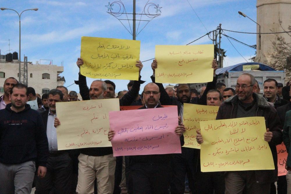 معلمو الخليل ينظمون اعتصاما ومسيرة احتجاجية