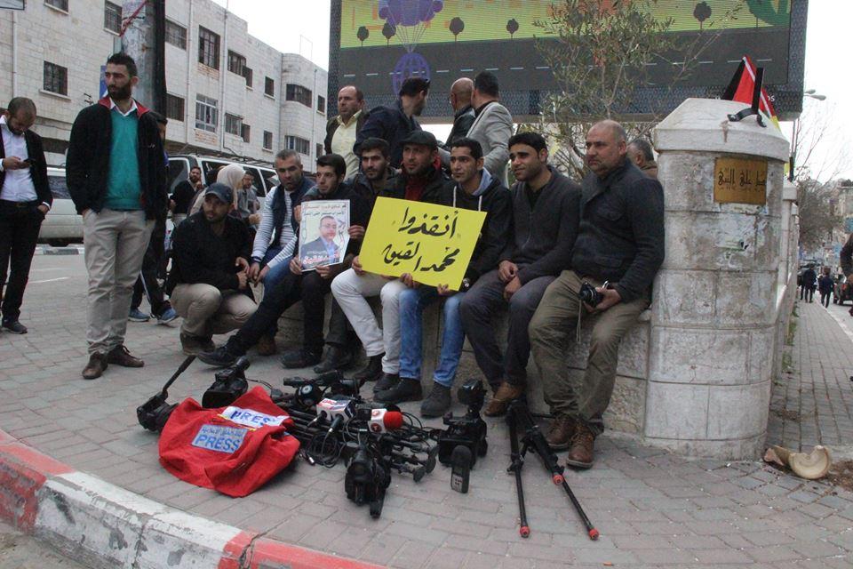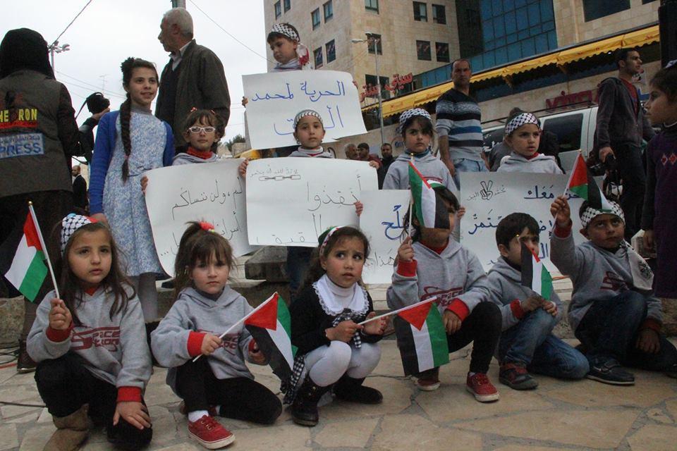 الصحفيون والمعلمون المضربون وأطفال الخليل في وقفة تضامنية مع القيق