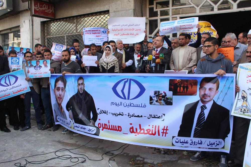 اعتصام تضامني كبير مع قناة "فلسطين اليوم" وسط غزة