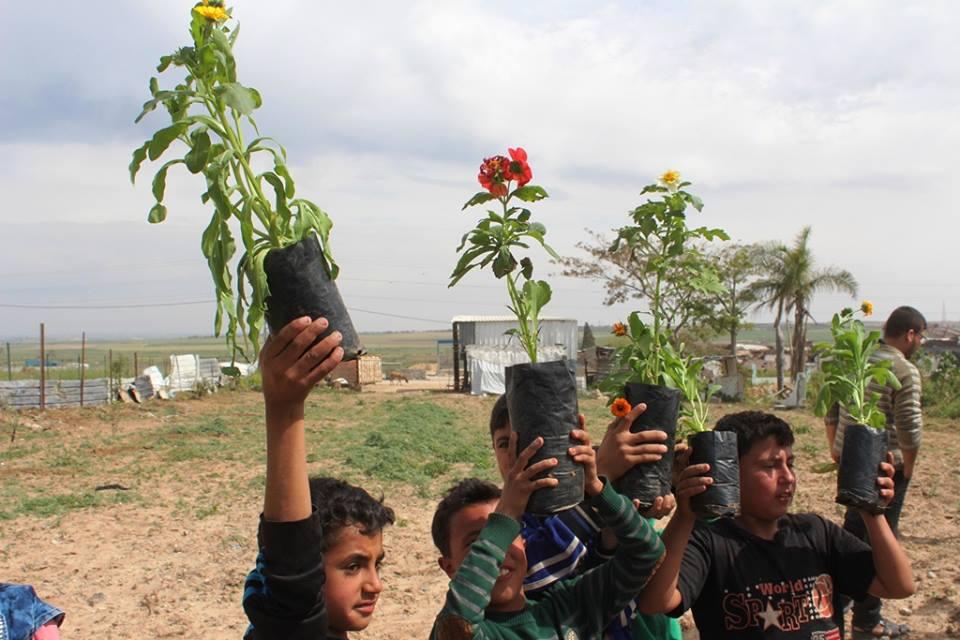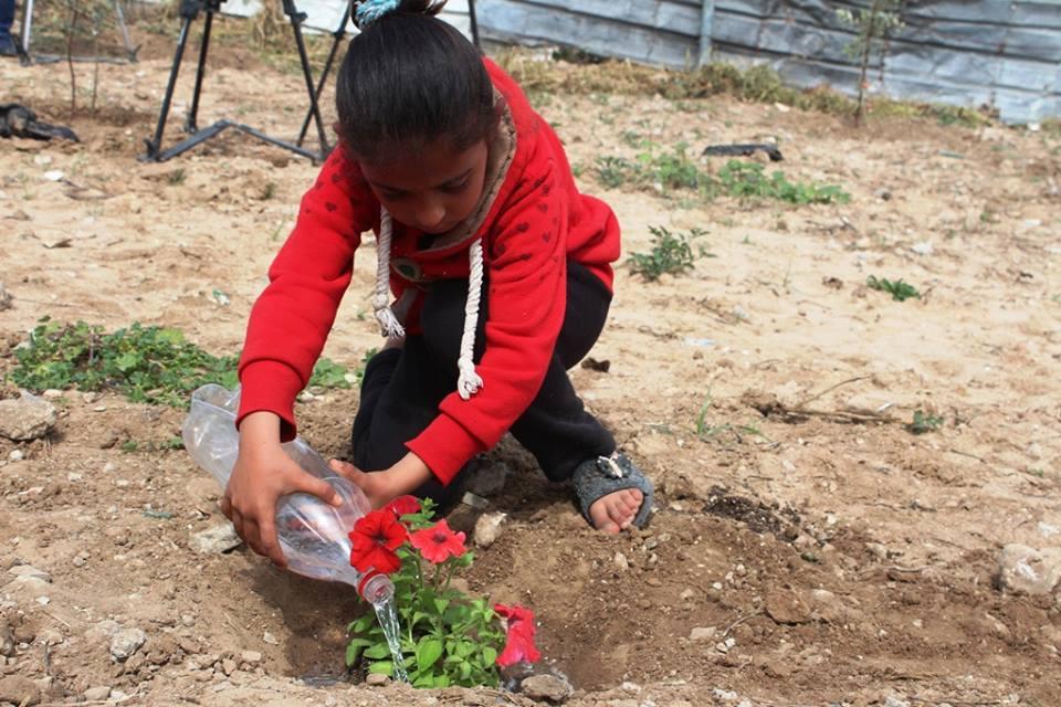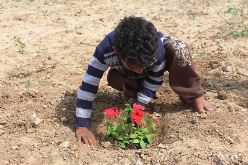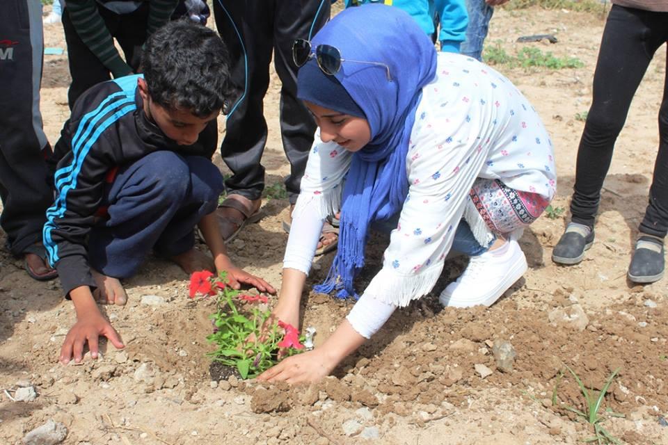 اطفال الشجاعية يزرعون الورود بين بيوتهم المُدمرة