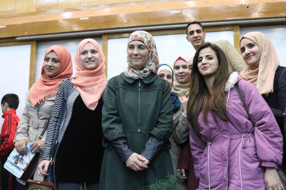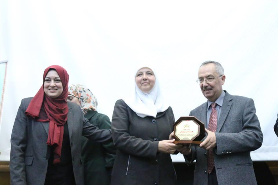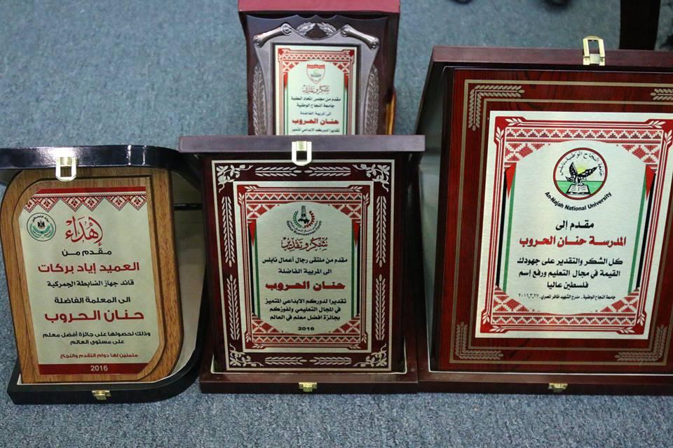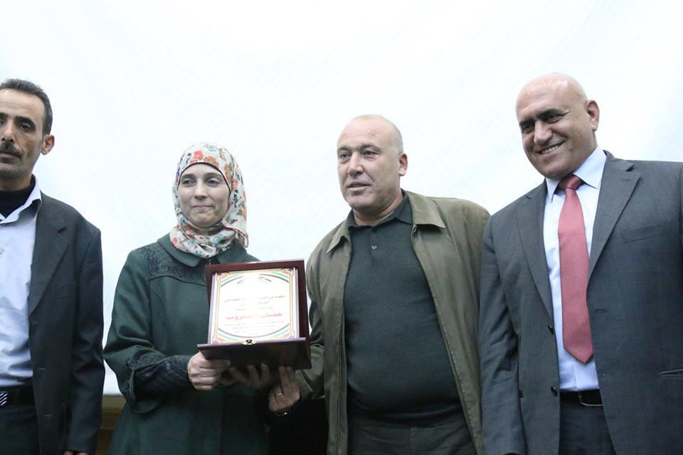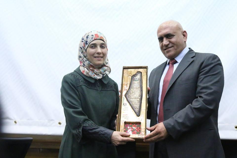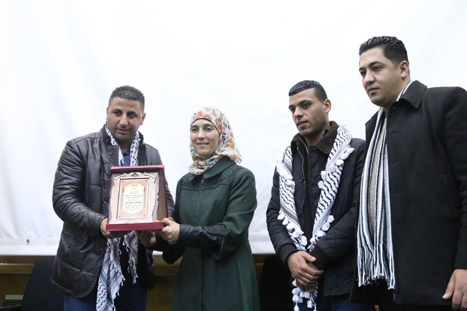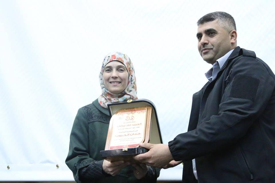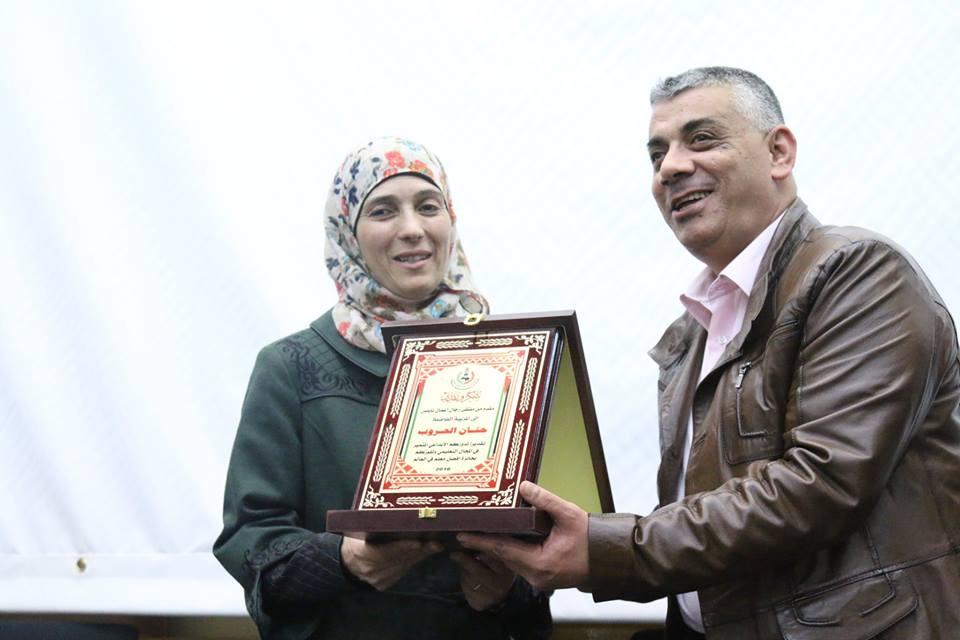 حفل تكريم المعلمة الفلسطينية حنان الحروب في جامعة النجاح