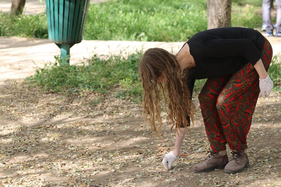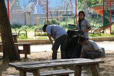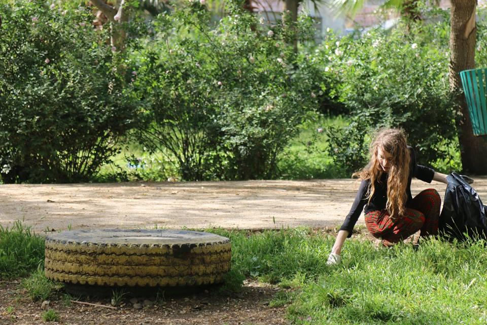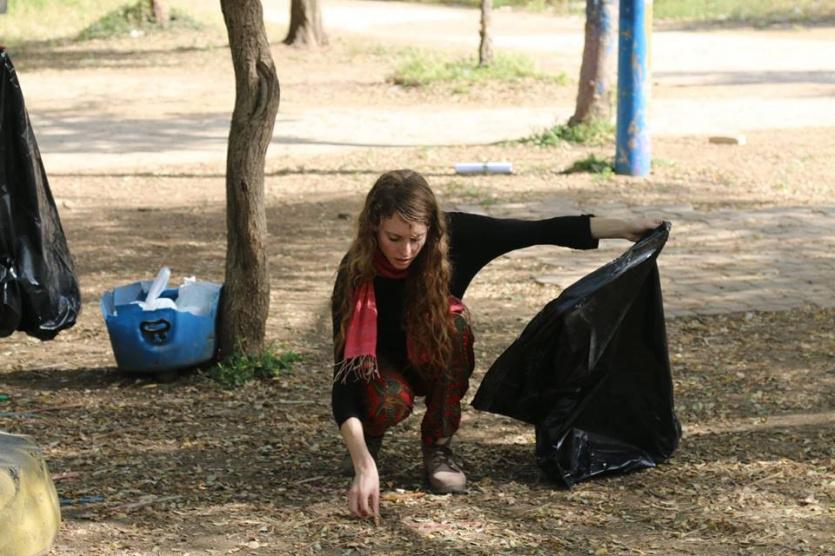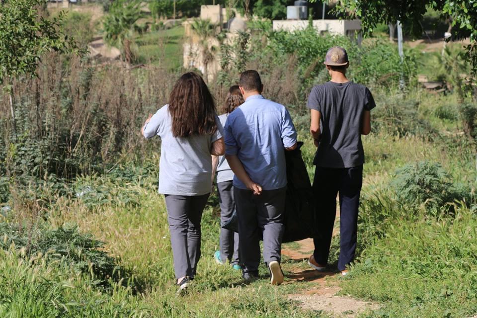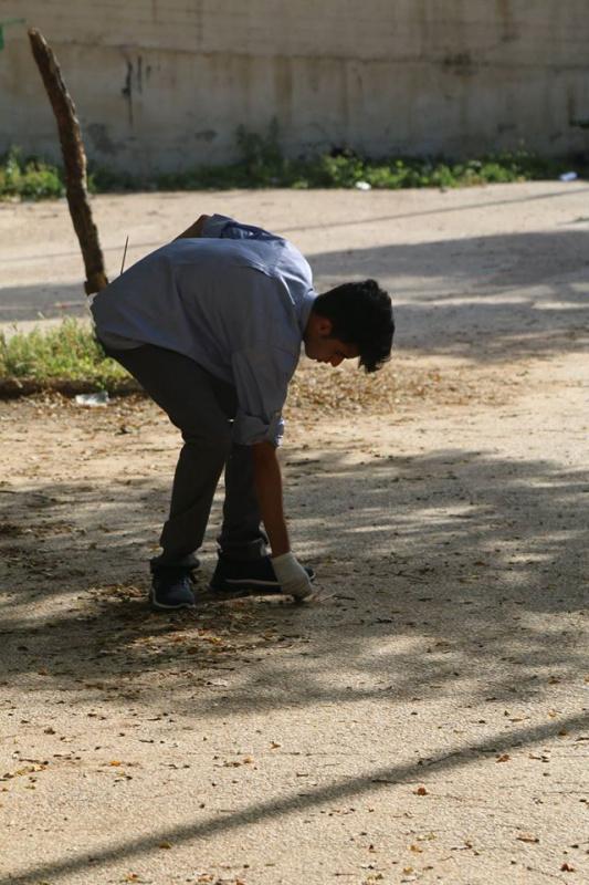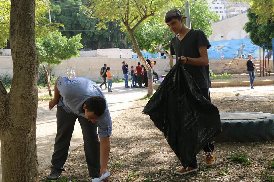 طلبة من مدرسة بكالوريا الرواد في نابلس يقومون بأعمال تنظيف لمنتزه جمال عبد الناصر