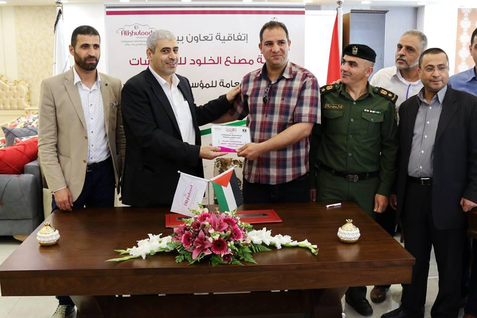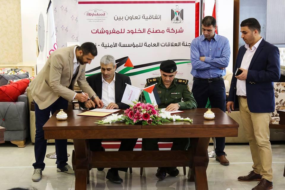 ووقع الاتفاقية فراس قتلوني المدير العام لشركة مصنع الخلود للمفروشات، وعن لجنة العلاقات العامة للمؤسسة الأمنية/نابلس المقدم كمال دويكات بحضور أعضاء اللجنة وعدد من الإعلاميين بينهم ادهم خروبي المدير التنفيذي لشركة ديارنا لإدارة الحدث المستشار الإعلامي لشركة مفروشات الخلود.