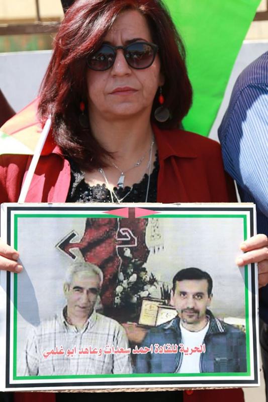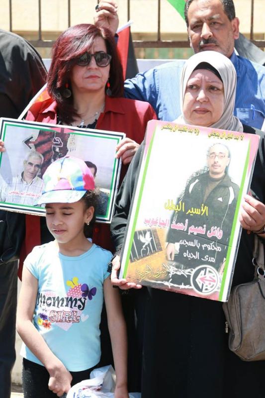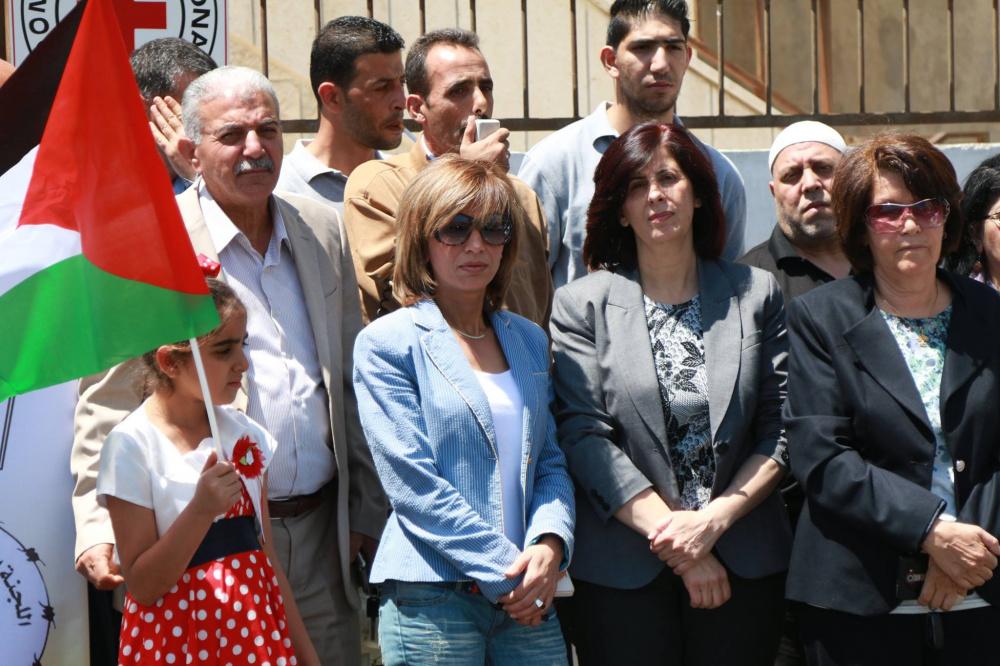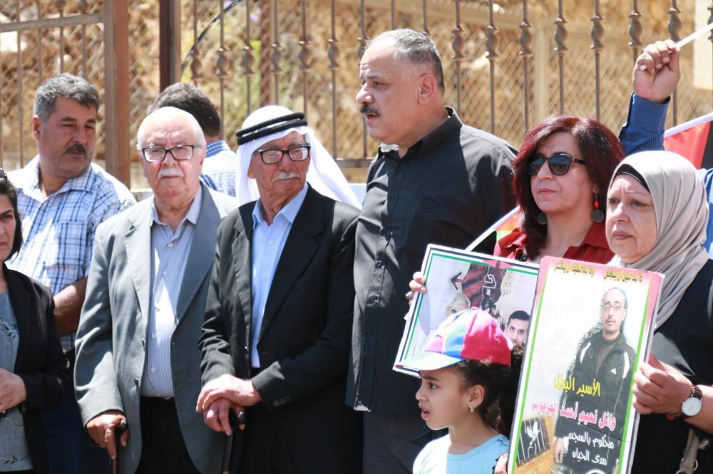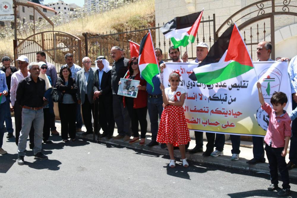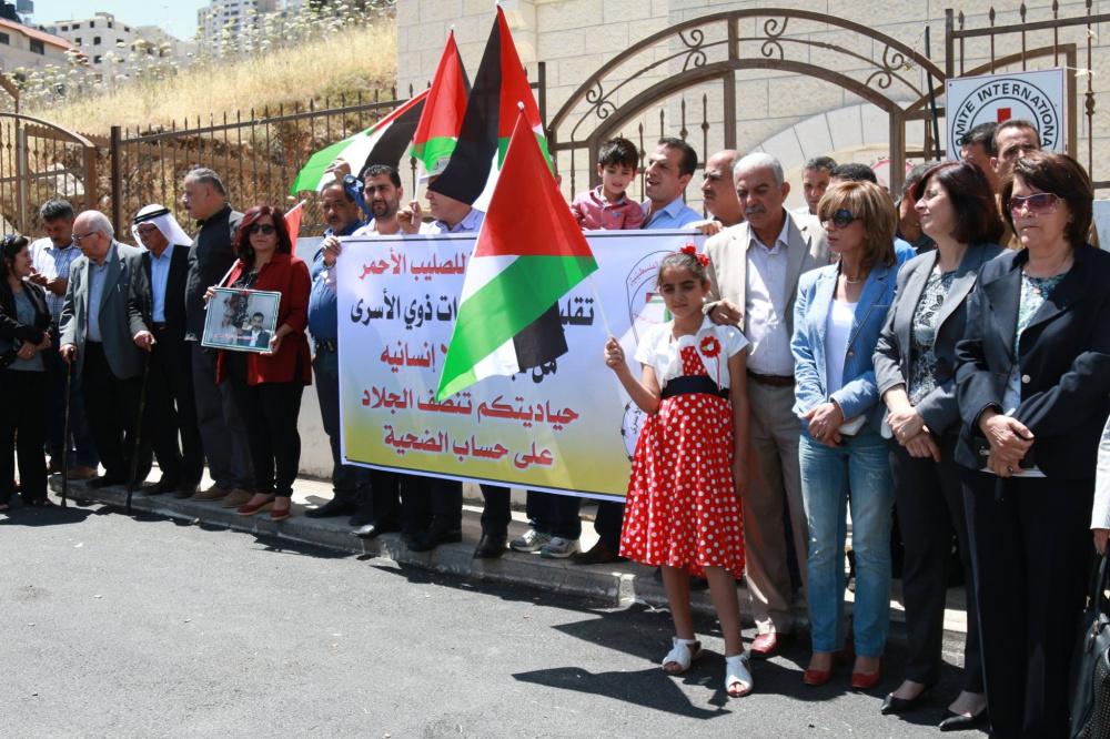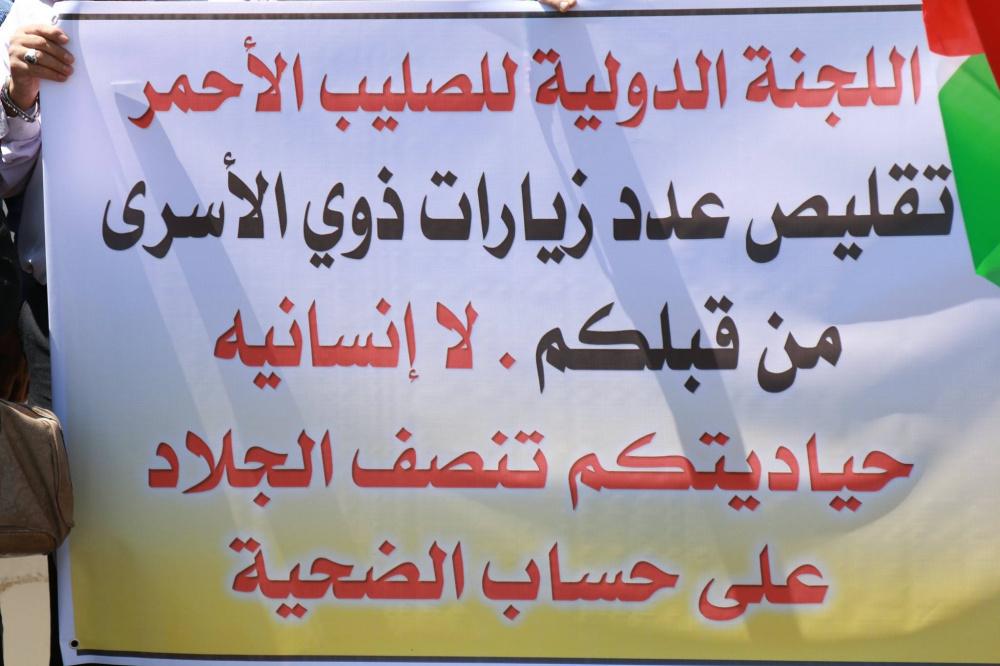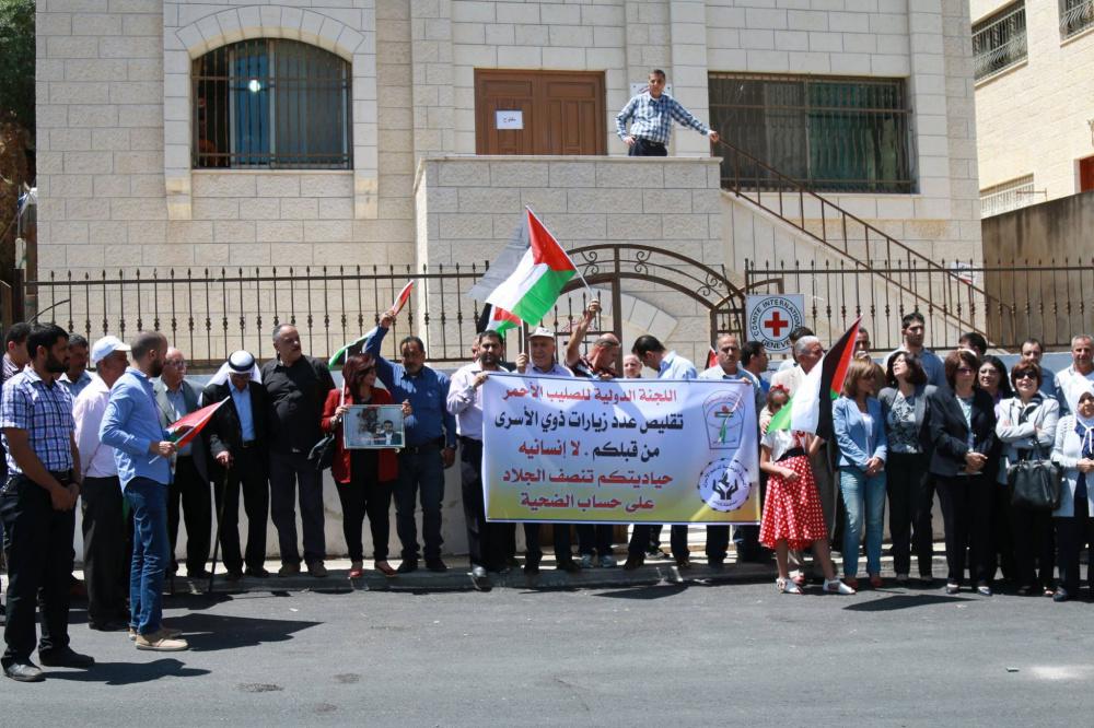 اعتصام أمام مبنى الصليب الأحمر في نابلس احتجاجاً على قرار تقليص الزيارات لعائلات الأسرى مرة بالشهر