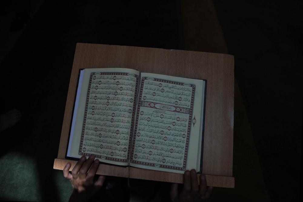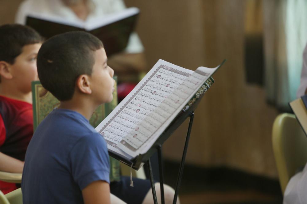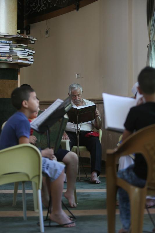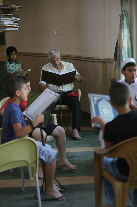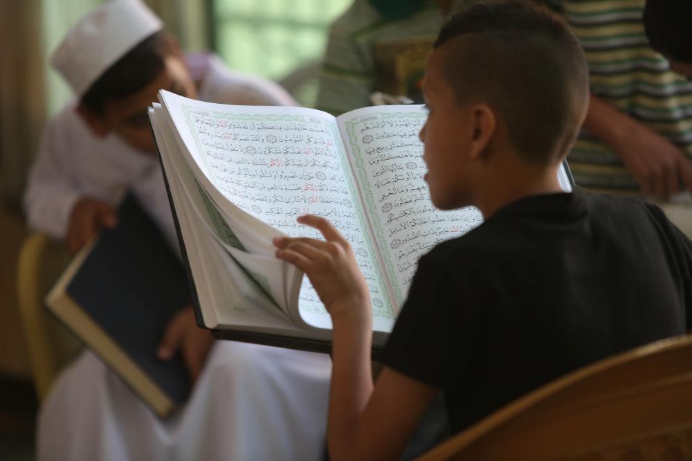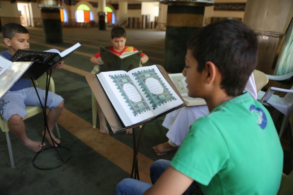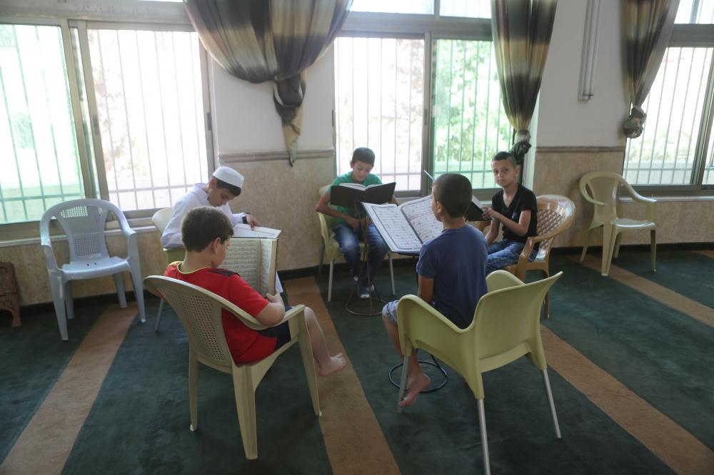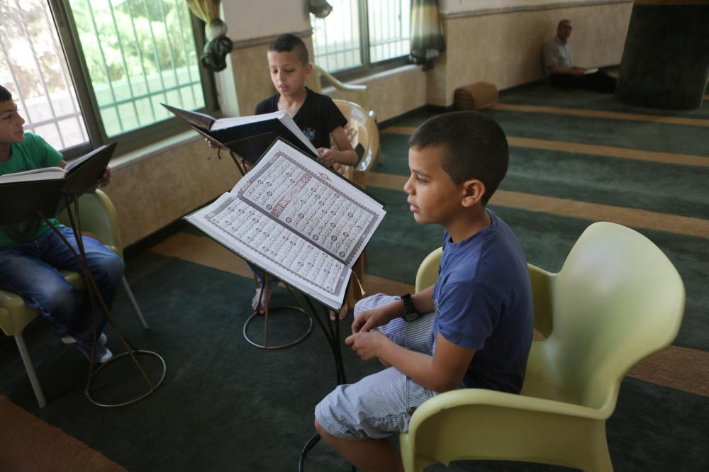 اطفال يقرأون القرآن في مسجد تميم الداري في رام الله