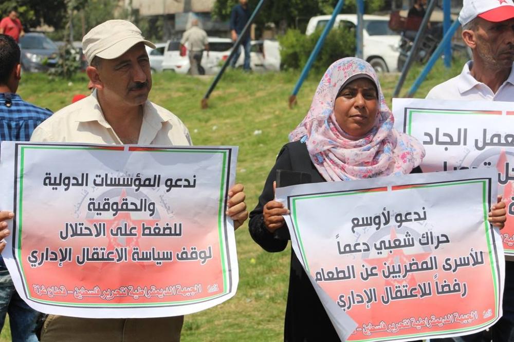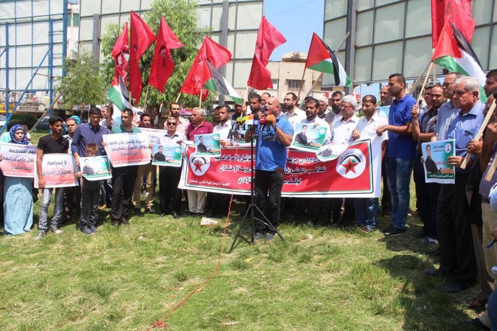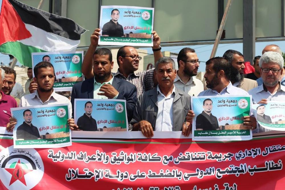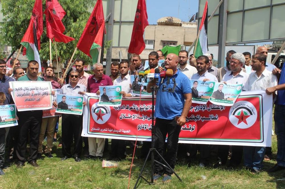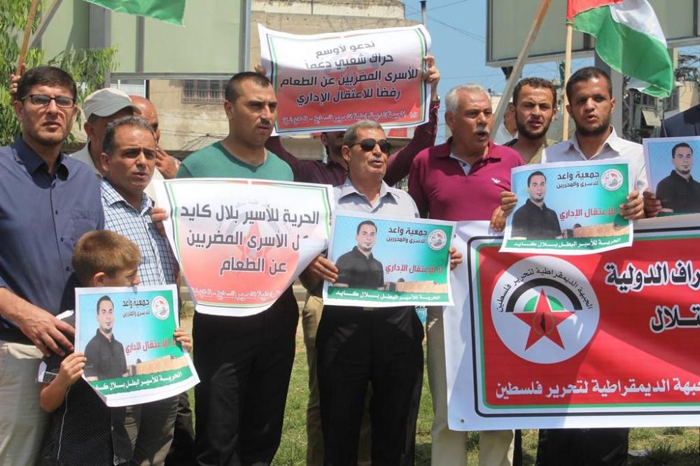 نظمت الجبهة الديمقراطية لتحرير فلسطين وجمعية واعد للأسرى بغزة اليوم، وقفة جماهيرية دعماً وإسناداً للأسير بلال كايد وكافة الأسرى المضربين عن الطعام في سجون الاحتلال الإسرائيلي، وضد سياسة الاعتقال الإداري، ورفع المشاركون شعارات ويافطات تدعو للالتفات لأوضاع الأسرى المضربين عن الطعام وكافة الأسرى في سجون الاحتلال، وضرورة وجود وقفة جادة من مختلف شرائح الشعب الفلسطيني وتياراته وفصائله تؤدي إلى تحرير الأسرى من سجون الاحتلال.