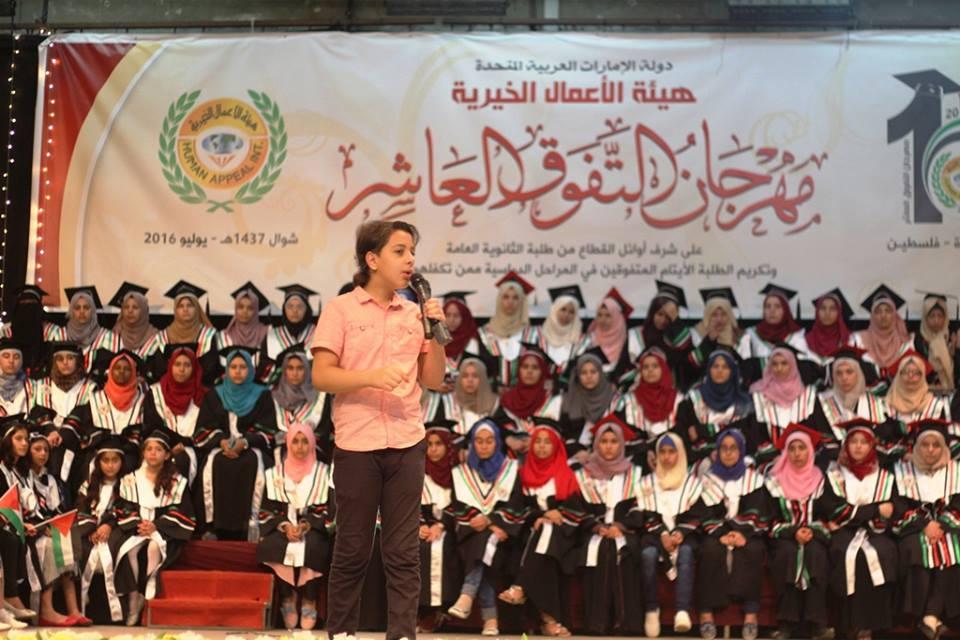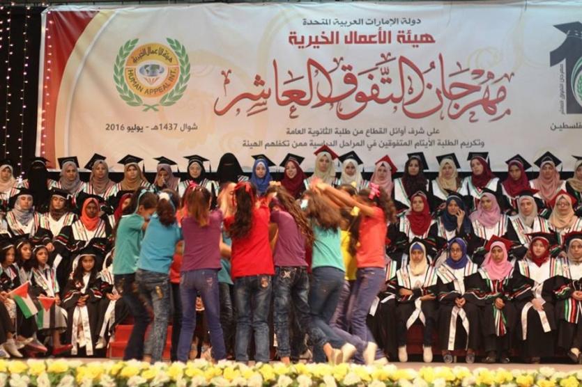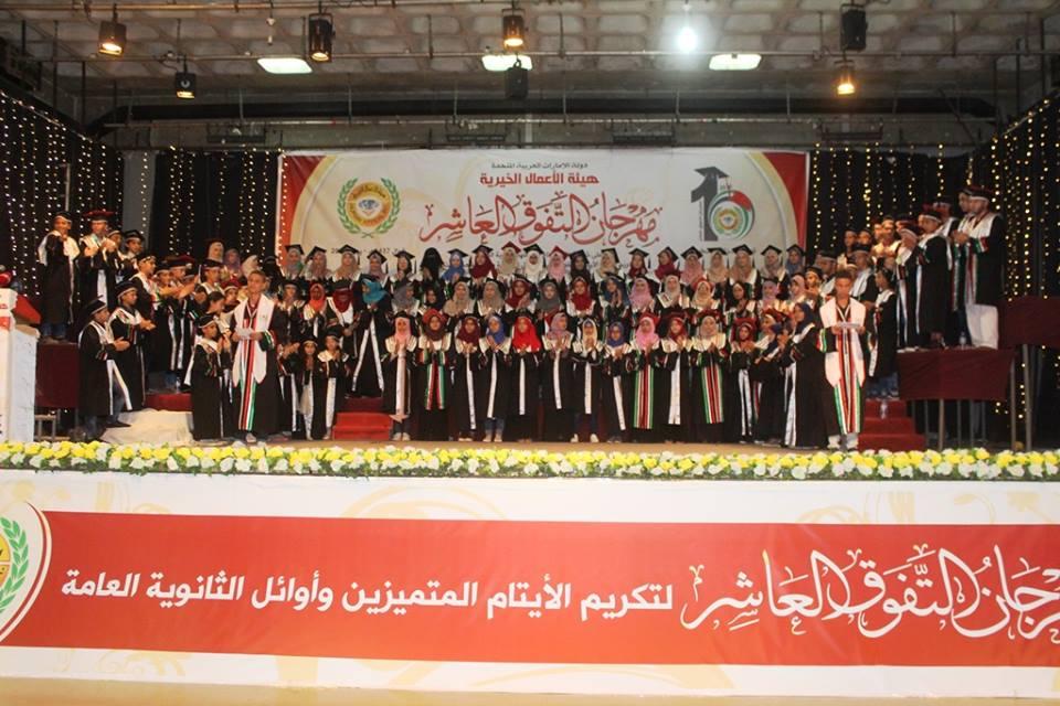 نظمت هيئة الاعمال الخيرية "الامارات العربية المتحدة" في غزة اليوم الأحد، مهرجان التفوق العاشر، وذلك على شرف أوائل قطاع غزة من طلبة الثانوية العامة، اضافة لتكريم الطلبة الأيتام المتفوقين في مراحلهم الدراسية ممن تكفلهم الهيئة.