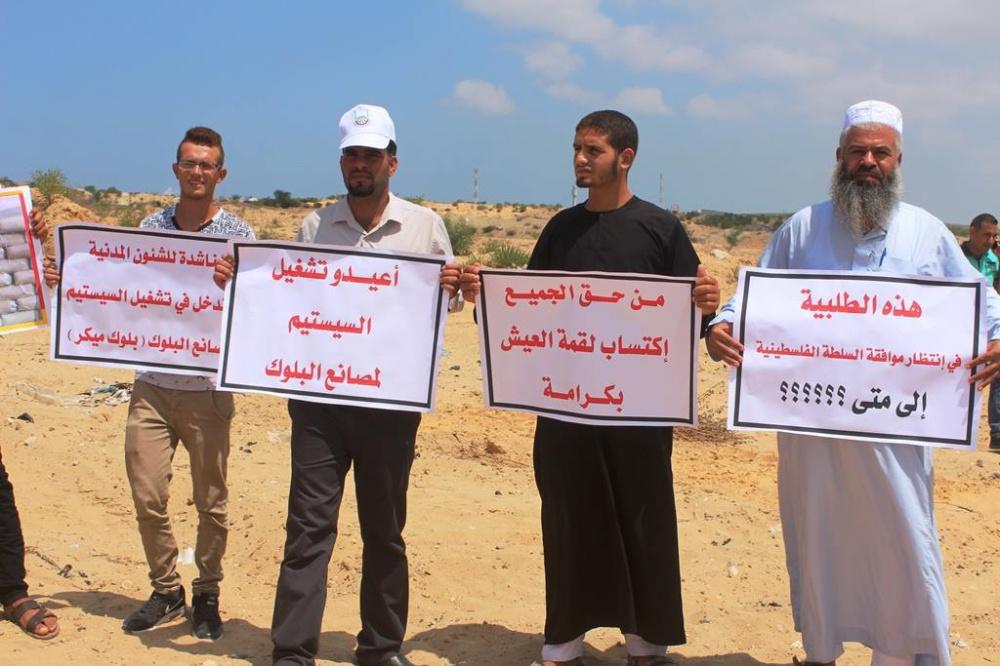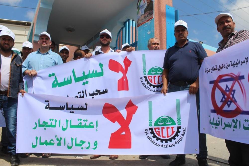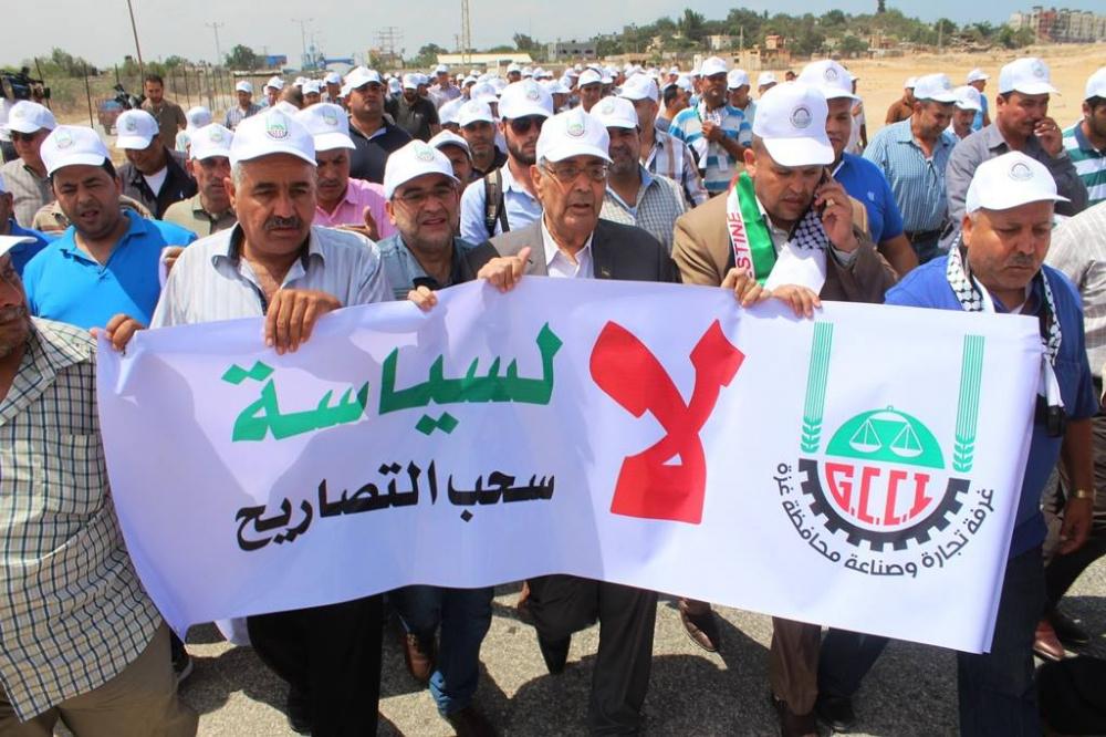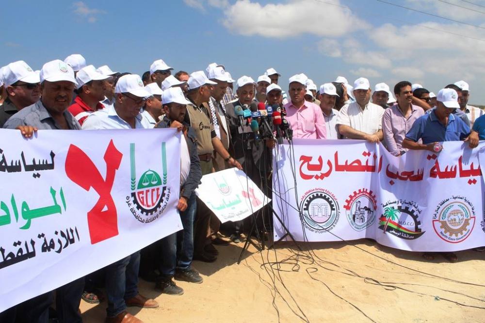 اتجار غزة يحتجون في معبر "ايرز" رفضاً لسياسة سحب التصاريح