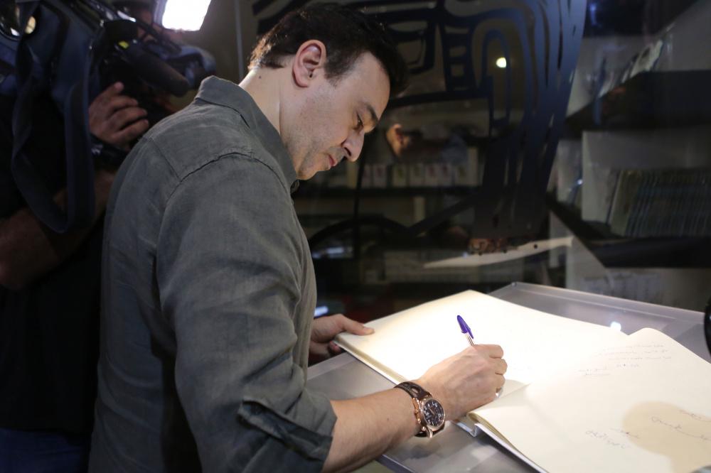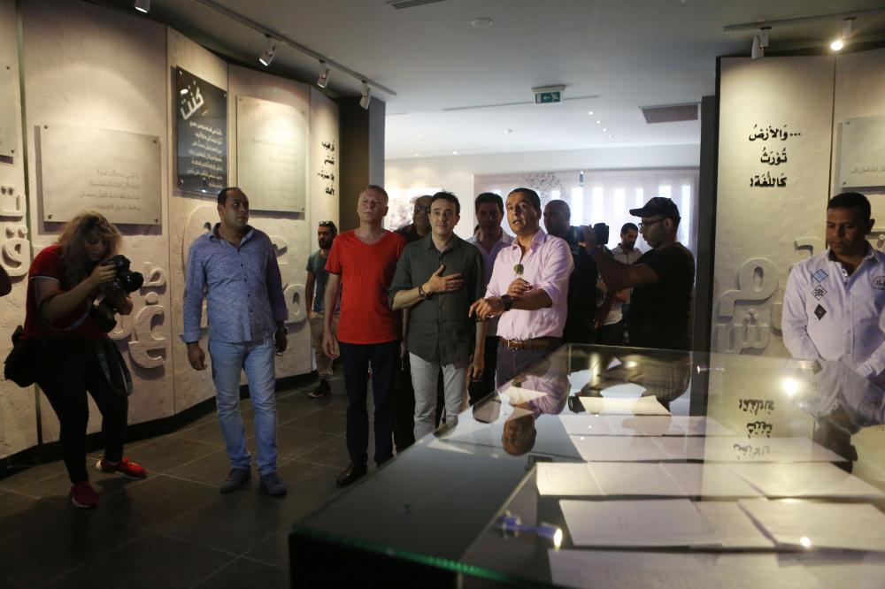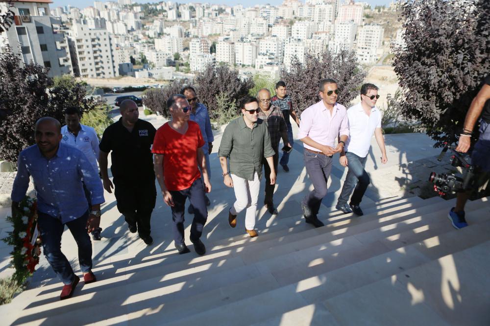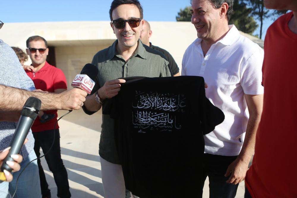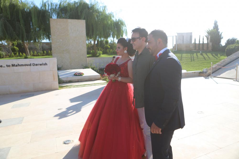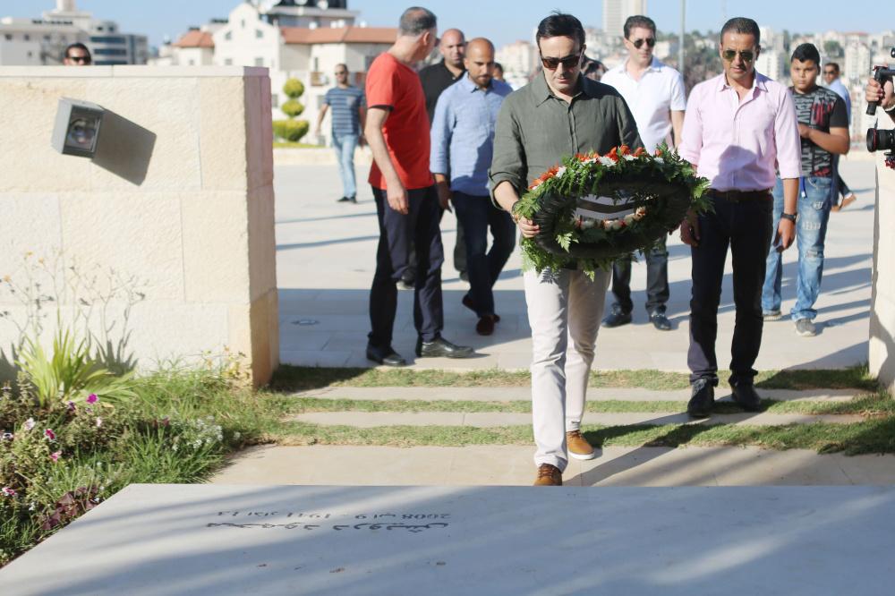 الفنان صابر الرباعي يضع إكليلا من الزهور على قبر محمود درويش