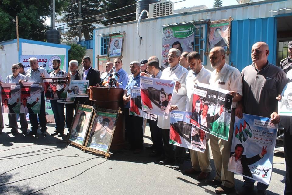 نظمت جمعية واعد ورابطة الأسرى بالتعاون مع نقابة أطباء الأسنان بغزة، وقفة تضامنية دعما للأسرى المضربين عن الطعام لاسيما الأخوين البلبول والقاضي، تخللها مؤتمر صحفي باللغة الفرنسية والانجليزية والألمانية وتسليم مذكرة احتجاج لمندوب المفوض السامي حول أوضاع الأسرى المضربين في ظل تدهور خطير على حياة الأسير مالك القاضي وبعد ابلاغ الأطباء لمحاميه بعدم تفاؤلهم حول حالته.