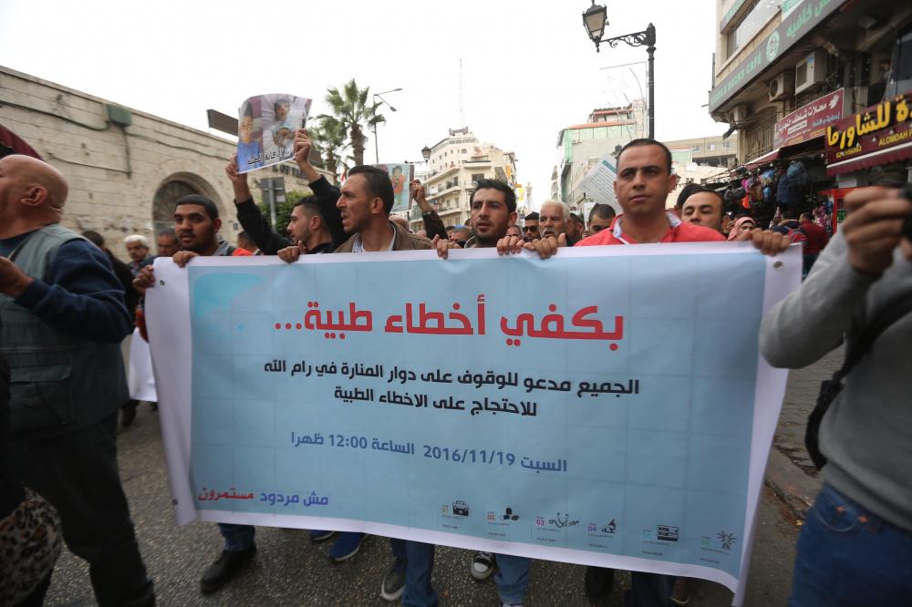 احتجاج شعبي وسط رام الله للمطالبة بوقف الاخطاء الطبية