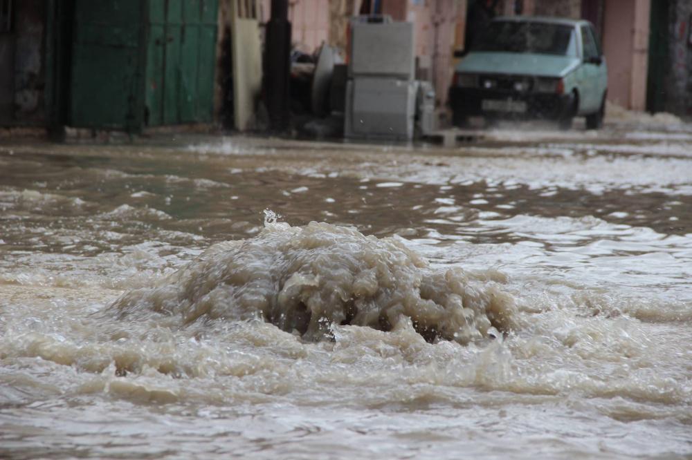 بعد المياه العادمة، مياه الامطار تغرق البلدة القديمة في الخليل.
