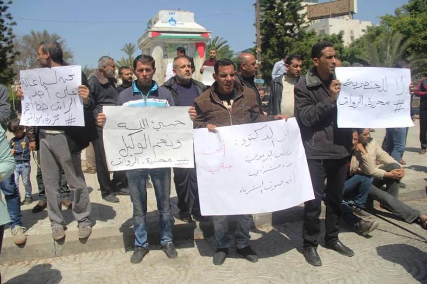 وقفة احتجاجية لموظفي السلطة الفلسطينية بغزة ضد الخصومات