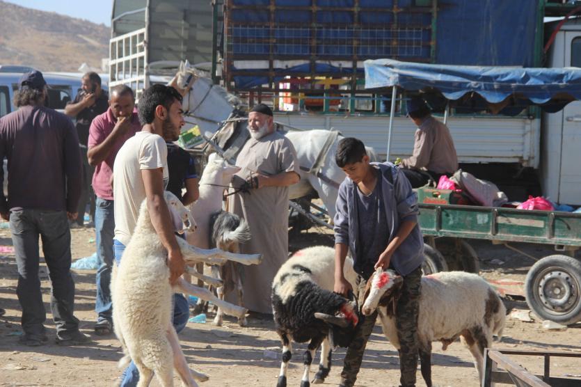 مساحة من الارض تخصص لتجار المواشي لعرض مواشيهم للبيع، ويرتادها ايضا مواطنون عاديون لغرض التجارة احيانا او الشراء، باتت تعرف بـ"سوق الحلال". الا ان الإقبال هذا العام يبدو ضعيفا.