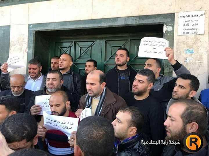 موظفو غزة يحتجون ويغلقون بنك رفضا للخصومات