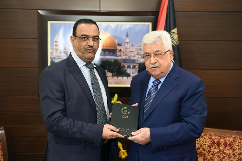 تسلم الرئيس محمود عباس، التقرير السنوي للنيابة العامة للعام 2017، من قبل النائب العام احمد البراك.