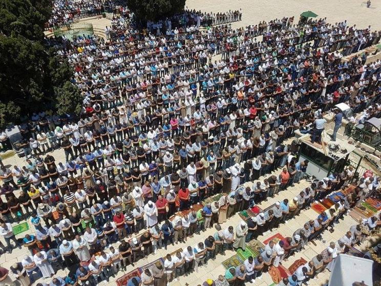 وكان نحو 120 ألفاً أدوا صلاة الجمعة الاولى من رمضان برحاب الأقصى، في الوقت الذي يشارك عشرات الآلاف يوميا بمختلف الصلوات في المسجد المبارك.