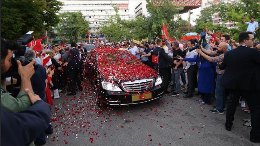 وكان أردوغان قد ادى اليوم، اليمين الدستورية وبدأ ولاية رئاسية جديدة لمدة خمس سنوات، في ظل نظام رئاسي جديد يمنحه صلاحيات واسعة.