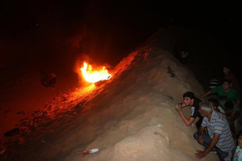 ويتظاهر شبان فلسطينيون يطلقون على أنفسهم "الارباك الليلي" قبالة خيام العودة على حدود القطاع بشكل يومي، حيث يتخلل ذلك اشعال اطارات وتشغيل مكبرات الصوت وصافرات الإنذار واطلاق أشعة الليزر.