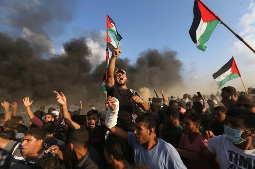 وبدأ المتظاهرون بإشعال الاطارات المطاطية على طول الحدود الشرقية بينما ردت قوات الاحتلال بإطلاق الرصاص وقنابل الغاز، حيث انتشر القناصة بشكل كبير خلف السواتر الترابية.
