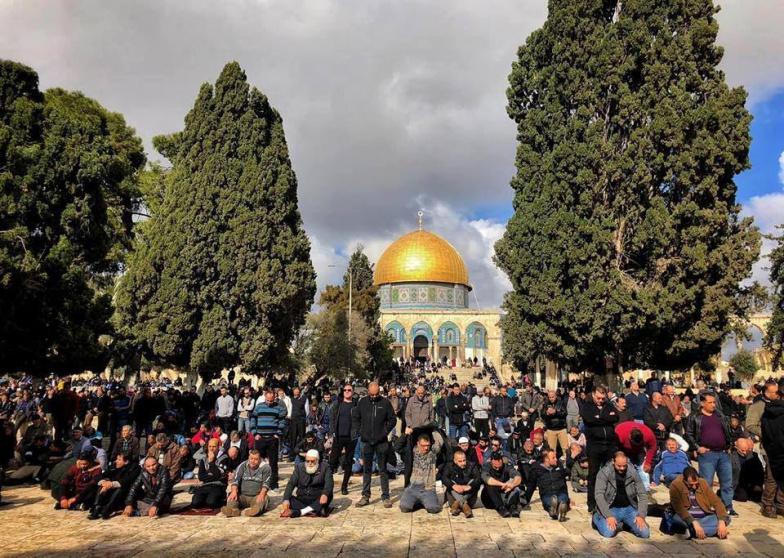 أدى الآلاف، اليوم صلاة الجمعة في رحاب المسجد الأقصى المبارك، رغم اجراءات الاحتلال المشددة في القدس، وأحوال الطقس الباردة.