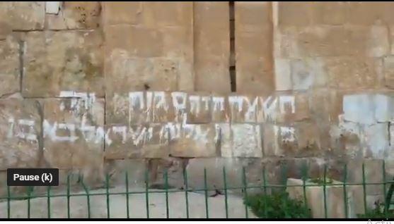 شاهد: مستوطن يخط شعارات عنصرية على باب الرحمة في المسجد الأقصى