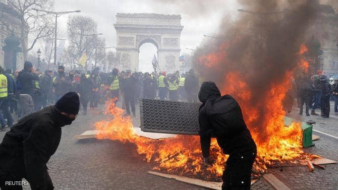 واشتبك متظاهرون من "السترات الصفراء" مع شرطة مكافحة الشغب بالقرب من قوس النصر، وقامو بتخريب متاجر فاخرة في احتجاجات السبت الثامنة عشرة على التوالي المناوئة لسياسات الرئيس إيمانويل ماكرون.