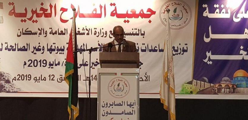 وجاءت أقوال الوزير د. زيارة خلال إفطار جماعي، الاثنين، في قاعة رشاد الشوا بمدينة غزة، نظمته جمعية الفلاح الخيرية للأسر المتضررة في العدوان الإسرائيلي الأخير على قطاع غزة تعهد زيارة استمرار وزارة الأشغال العامة والإسكان في بناء ما دمره الاحتلال من مساكن على غرار بناء 2500 وحدة سكنية مؤخرا بتمويل من دولة الكويت، وتنفيذ إعادة بناء 111 وحدة سكنية في حي الندى شمال بيت حانون، وبرج الإيطالي بتمويل من إيطاليا، معلنا باسم دولة فلسطين شكر دولة قطر على المنحة الأخيرة بقيمة 480 مليون دولار.