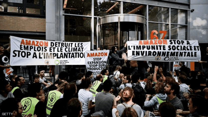 عطل نشطاء بيئيون انضم إليهم عدد من عناصر حركة أصحاب "السترات الصفراء" الاحتجاجية، مواقع شركة "أمازون" في فرنسا متهمين شركة البيع الإلكتروني بتدمير الوظائف والإضرار بالكوكب.