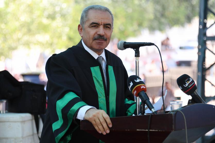 واختتم اشتية: "أقول للطلبة إن الشهادة التي تتسلمونها اليوم تؤهل حاملها أن يرى القدس بوضوح عاصمة لدولة فلسطين، وأن يرى غزة أجمل لتكون جزءا لا يتجزأ من دولة فلسطين، ويكون الوطن واحدا موحدا عامرا متطورا، ويرى أهلنا في الشتات يعودون إلى وطنهم".