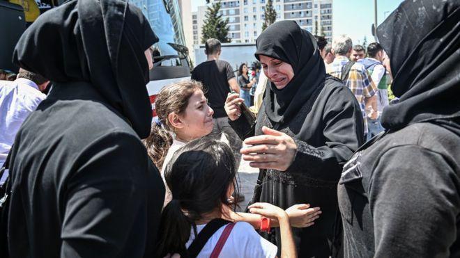ولكن بي بي سي تحدثت مع سوريين في تركيا يقولون إن الكثير منهم ينقلون بالحافلات إلى محافظة إدلب التي تشهد تصعيدا في القتال في الوقت الراهن.