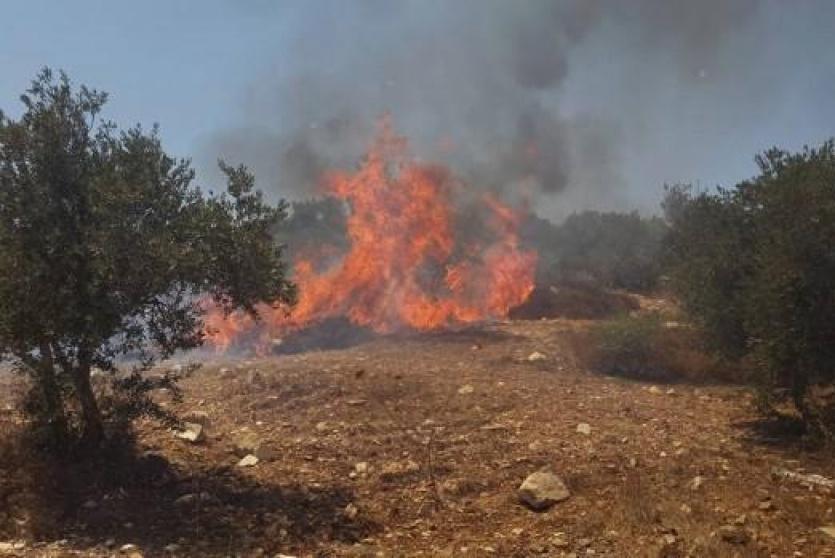 حريق يلتهم 300 شجرة زيتون قرب قرية الطيبة غرب جنين