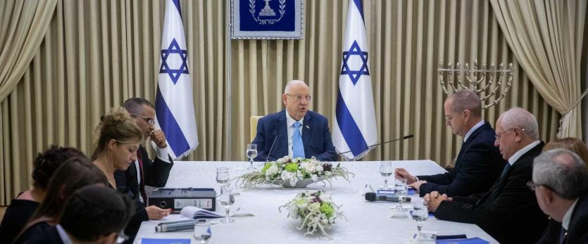 ويقوم الرئيس الاسرائيلي رفلين بهذه الساعة بالاستماع الى توصيات ممثلي كل من "يهدوت هتوراة ويمينا والعمل -غيشر والمعسكر الديمقراطي".