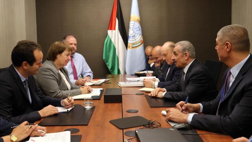 وقال اشتية لدى لقائه مبعوث الاتحاد الأوروبي لعملية السلام في الشرق الأوسط سوزانا تيرستال، والمبعوث السويسري لعملية السلام رونالد ستينغ، كل على حدة، في نيويورك على هامش مشاركته في اجتماع المانحين (AHLC)، إن إسرائيل انتهكت كل الاتفاقيات الموقعة والقرارات الدولية.