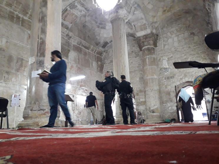 عنصران من شرطة الاحتلال يقتحمان مصلى باب الرحمة في الأقصى