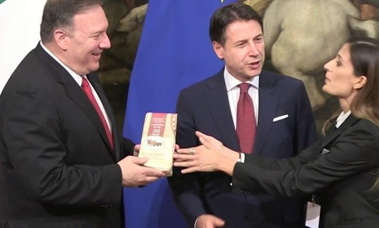 تمكنت مراسلة البرنامج الساخر في التلفزيون الإيطالي أليتشي مارتينيلي من إعطاء قطعة من جبنة "البارميزان" لوزير الخارجية الأمريكي مايك بومبيو، أثناء لقائه نظيره الإيطالي جوزيبي كونتي.