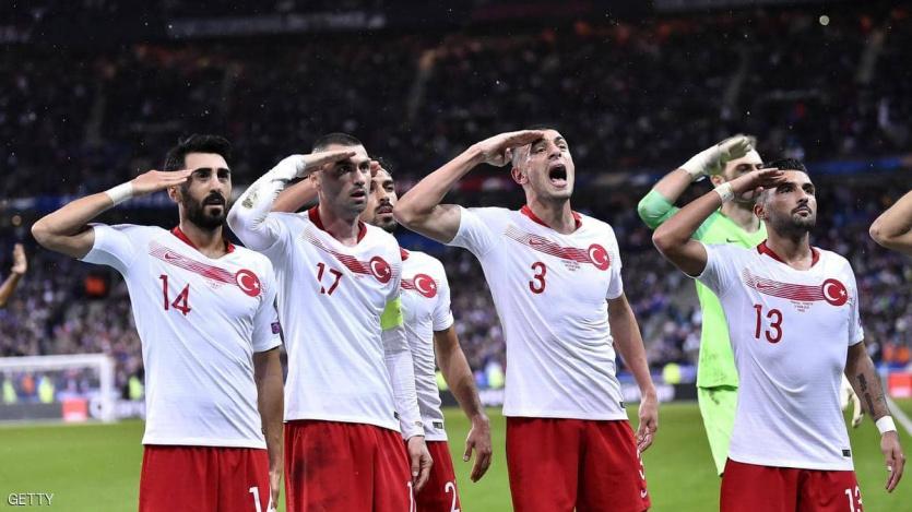 وتمثل التحية العسكرية التي أداها لاعبو المنتخب التركي بعد مباريات المنتخب مع نظيره الألباني والفرنسي ضمن تصفيات بطولة الأمم الأوروبية "يورو 2020 " الأسبوع الماضي، انتهاكا للقواعد التي تحظر أي بيانات أو تعبيرات سياسية في الملاعب.