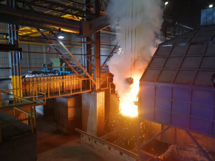 ما سبق قسم واحد، بينما القسم الثاني يختص بصهر الحديد، قال سامر"مصنع الصهر، يتم عن طريقه جمع الخردة الموجودة بالبلد، ويتم صهرها بدرجة حرارة حوالي 1700 درجة مئوية عن طريق أفران خاصة. هذا الصهر ينتج المواد الخام للحدادين وحديد مواد البناء. وهناك مواصفات ومقاييس عالمية نعمل بناء عليها، وموجود لدينا مختبر نفحص فيها جودة الحديد".