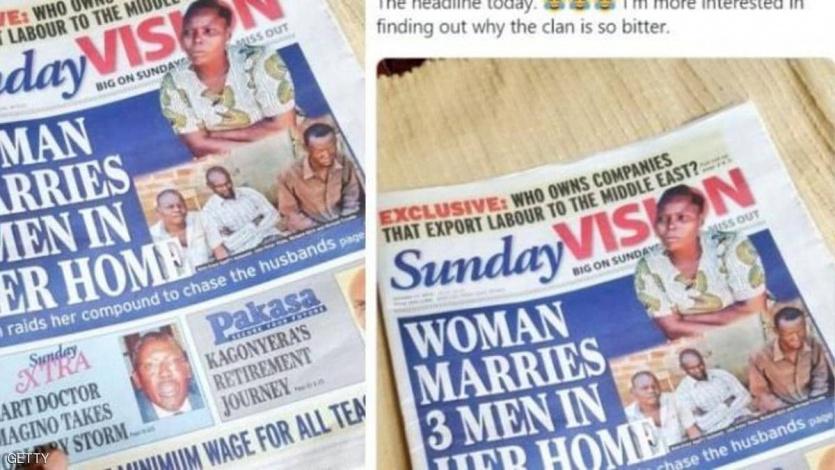 تصدرت امرأة أوغندية، تبلغ من العمر 36 عاما، عناوين الأخبار في وسائل الإعلام المحلية لإقدامها على الزواج من ثلاثة رجال في آن واحد بعد أن وصفت "الزواج الأحادي" بأنه "فاشل".