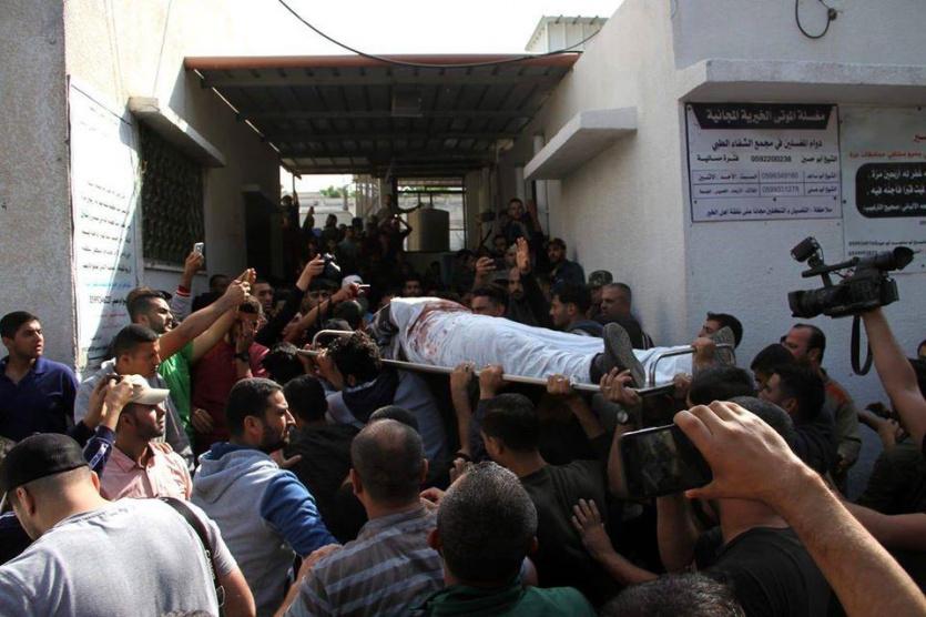 وصل شهيدان الى مستشفى النجار جراء التصعيد الاسرائيلي والقصف على حي النصر في مدينة رفح.