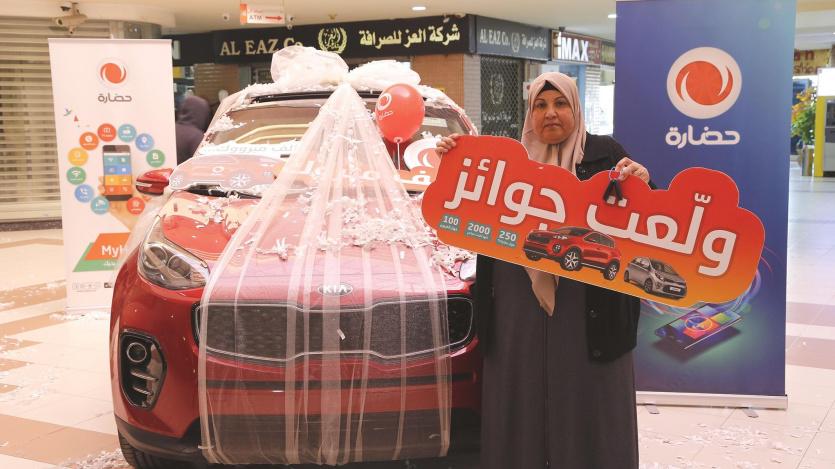 سلمت شركة حضارة للاستثمار التكنولوجي، إحدى شركات مجموعة الإتصالات الفلسطينية مفاتيح جيب كيا سبورتاجمدفوع الجمارك للفائزة الأخيرة ضمن حملتها"ولعـــــــت جوائــــــز” السيدة “ابتسام الحمامرة “من سكان بيت جالا قضاء محافظة بيت لحم، وذلك بعد أن أجري السحب بحضور مندوب من وزارة الإقتصاد الوطني واللجنة المختصة بالسحب من موظفي الشركة ضمن معايير النزاهة والشفافية.