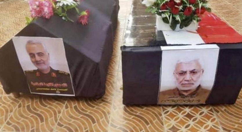 تجمع آلاف العراقيين وهم يهتفون "الموت لأميركا" السبت، في بغداد في موكب حول نعشي الجنرال الإيراني قاسم سليماني ونائب رئيس هيئة الحشد الشعبي أبو مهدي المهندس أبرز مساعديه في العراق اللذين قتلا الجمعة في غارة أميركية.