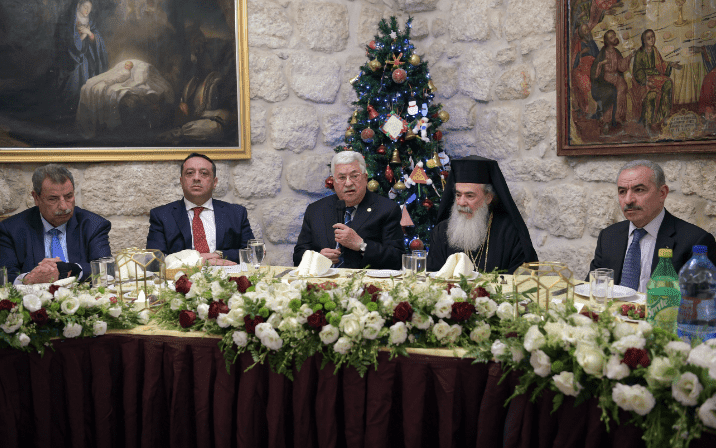 وأشاد الرئيس في كلمته خلال عشاء الميلاد، بحضور ممثل جلالة الملك عبد الله الثاني سامي داود، والبطريرك كيريوس كيريوس ثيوفلوس الثالث للروم الأرثوذكس في مدينة القدس وسائر فلسطين والأردن، ورئيس الوزراء محمد اشتية، بمواقف العاهل الأردني، راعي الأماكن المقدسة، وبمواقف بطريرك الروم الأرثوذكس والنصر القانوني الذي حققته البطريركية فيما يتعلق بعقارات باب الخليل بمدينة القدس.