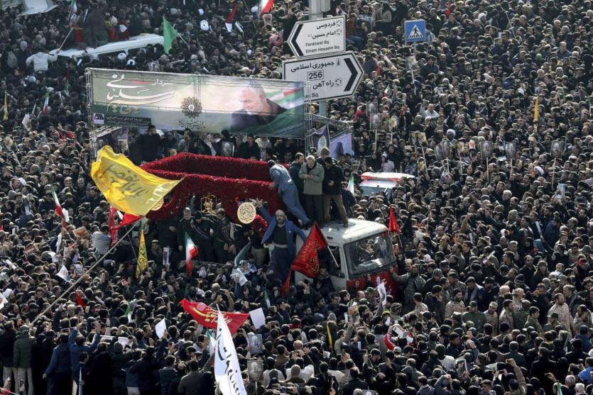 وأشاد الجنرال حسين القائد العام للحرس الثوري الإيراني في خطاب أمام الحشد الذي اتشح بالسواد في ساحة أزادي بسليماني وأقرب مساعديه الجنرال حسين بورجعفري الذي قتل معه. وقال إن "الشهيد قاسم سليماني أقوى وحي اليوم بعد موته".