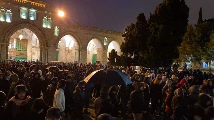 رغم الامطار.. الآلاف يؤمون الأقصى لصلاة الفجر